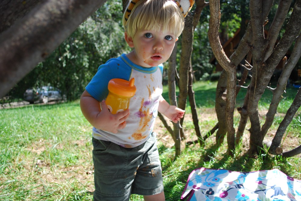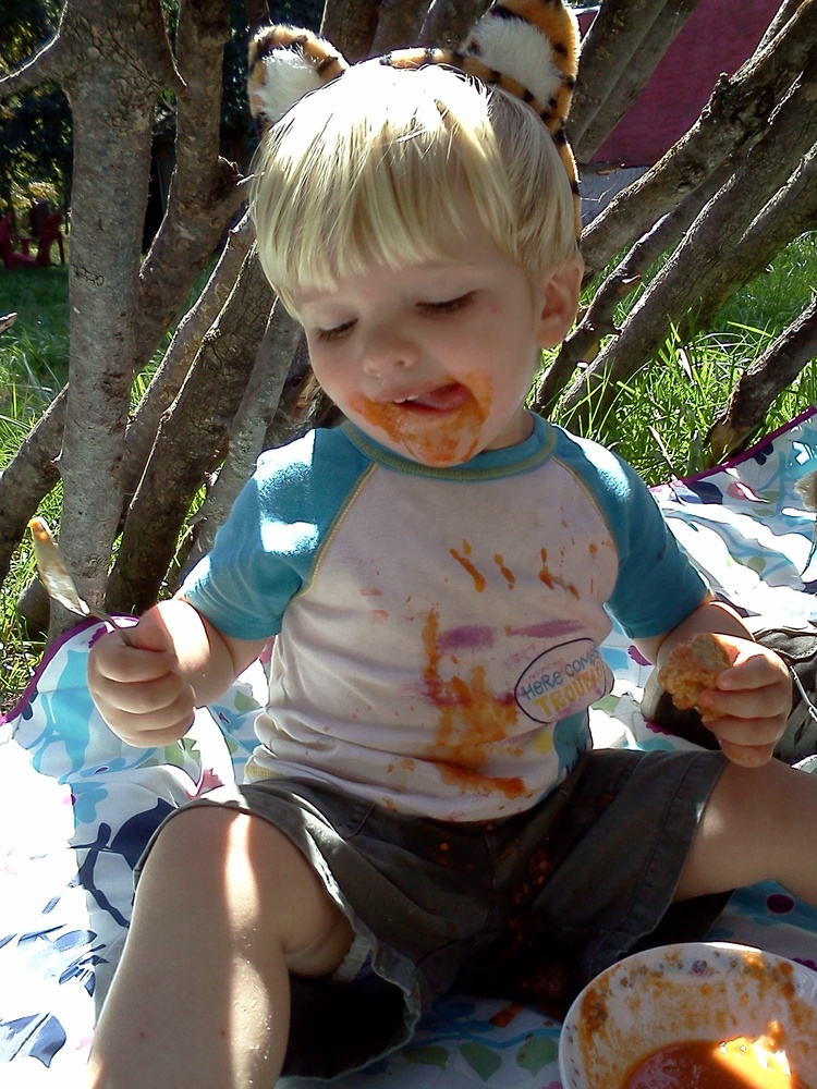 Once he got over how weird it was, Silas had a great time. He wore his tiger ears (thanks, Grandma and Grandpa!) and got totally covered in tomato soup. That shirt will never be the same again.