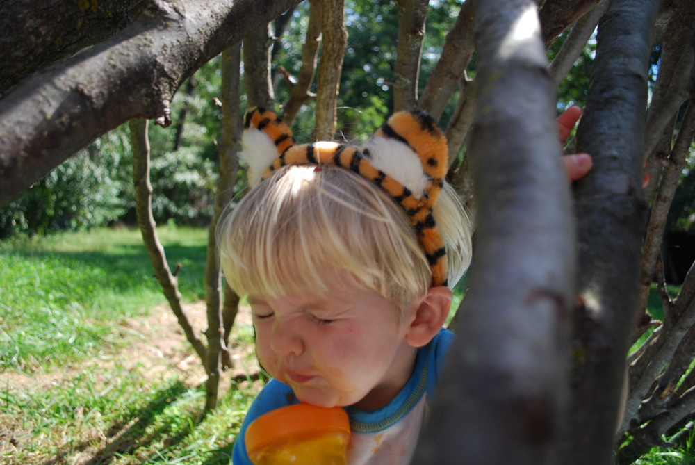 Silas seemed a bit confused at first. Why were we eating in the Eeyore house? We really haven’t done this much, although we have had a few picnics at parks recently. We hadn’t ever just hung out in the Eeyore house together, though.