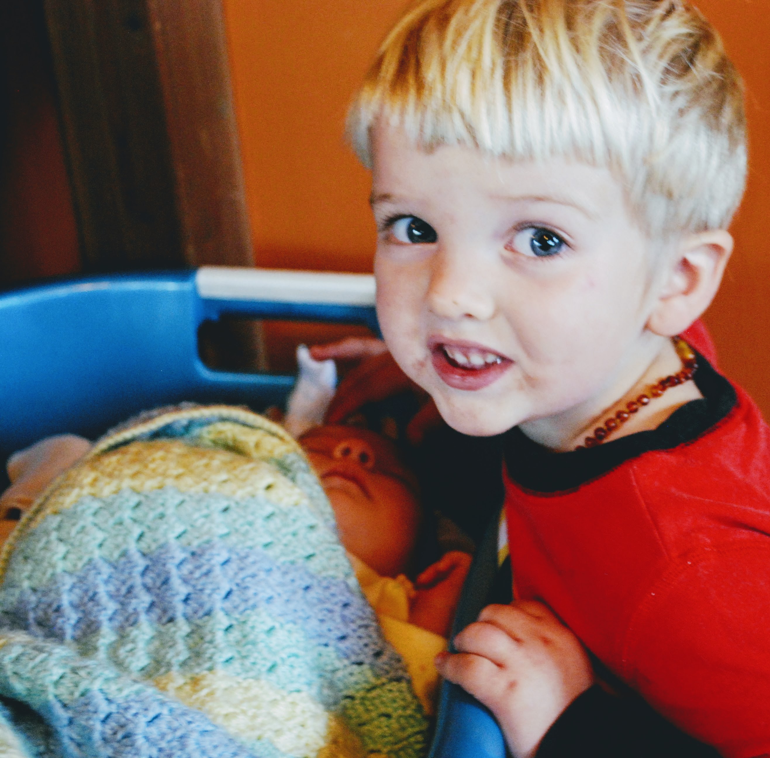 Things with Silas are improving. He is still a bit crazy, generally, and especially with Petra. It’s a good day that we get through with no injuries…but he is both less crazy excited about her, and a little more mellow. Since Christmas is coming, we’ve been looking at lots of Christmas-story picture books. He likes to tell me “Baby came out of mama’s tummy and then he were borned, like baby Petra!”