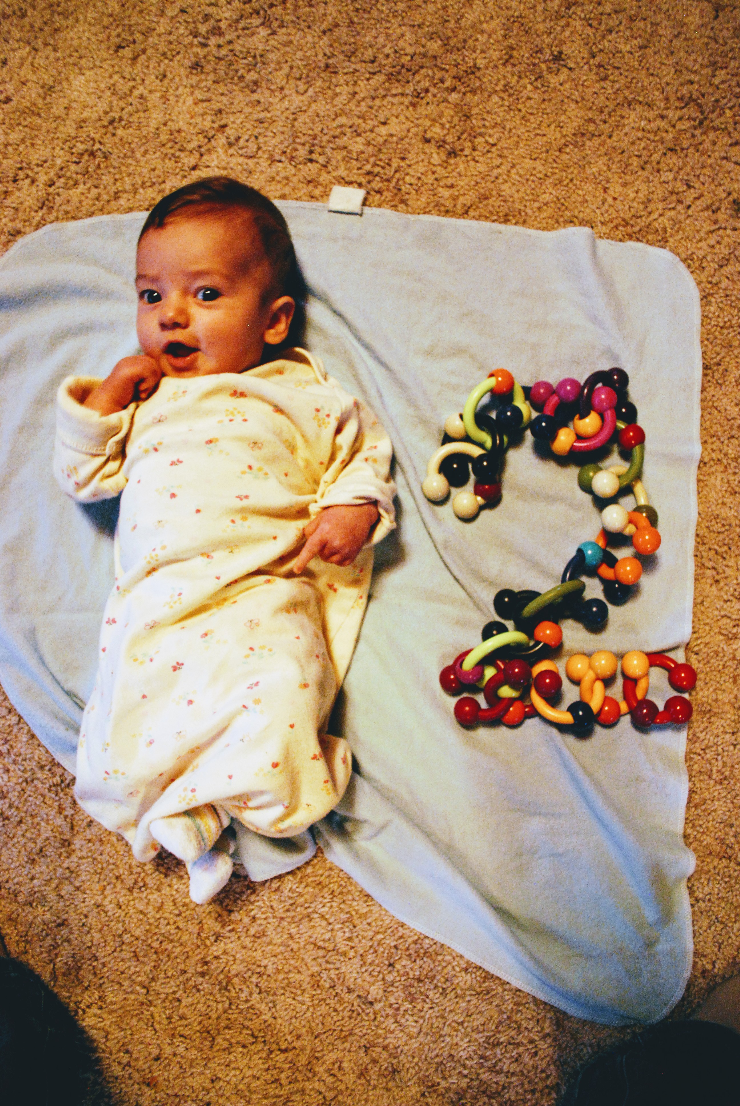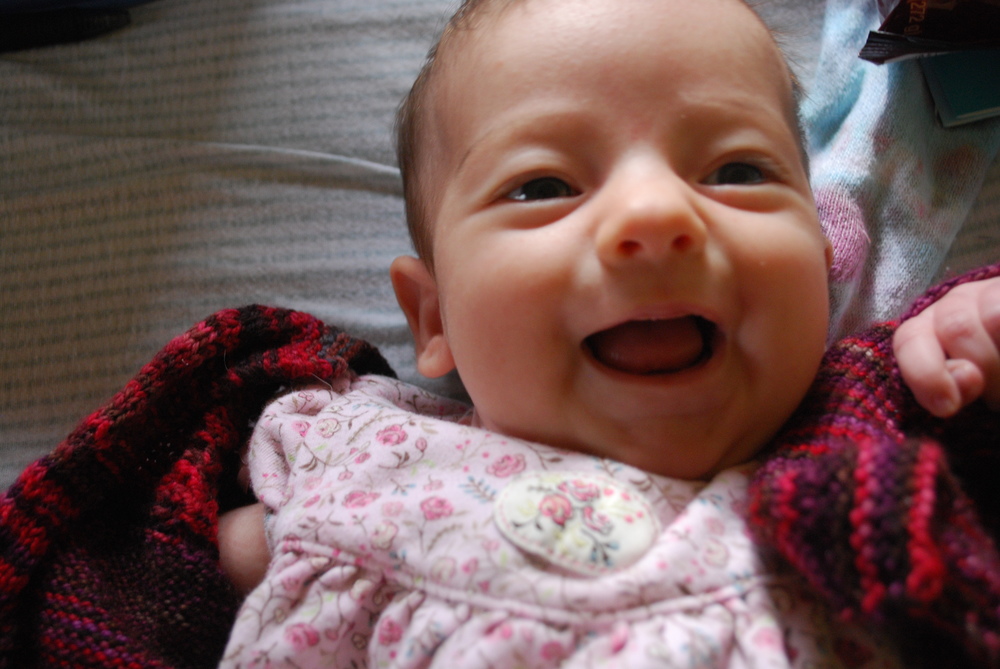 Petra started smiling right at five weeks! That was wonderful. She is a very interactive baby and loves to wiggle and giggle and make faces at us.