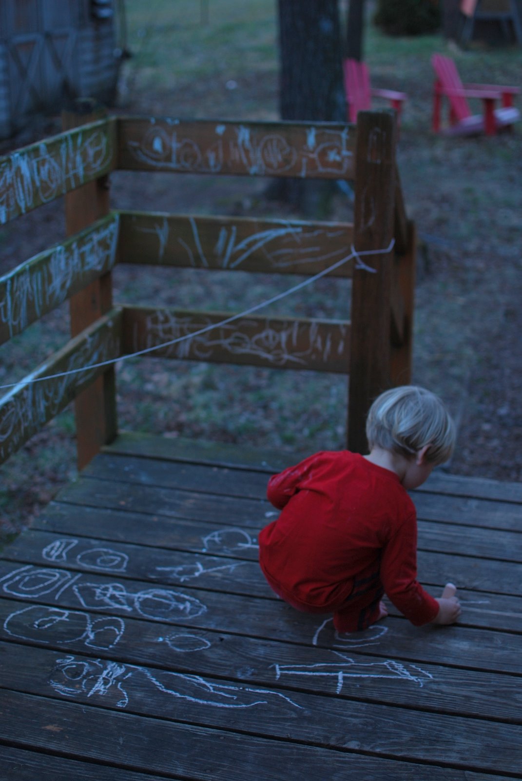 He drew in a book, for the first time ever. I scolded him for it, but I honestly think he just couldn’t help himself. He’s driven to draw on any surface that presents itself. I’ve moved the books out of his reach until this phase passes.