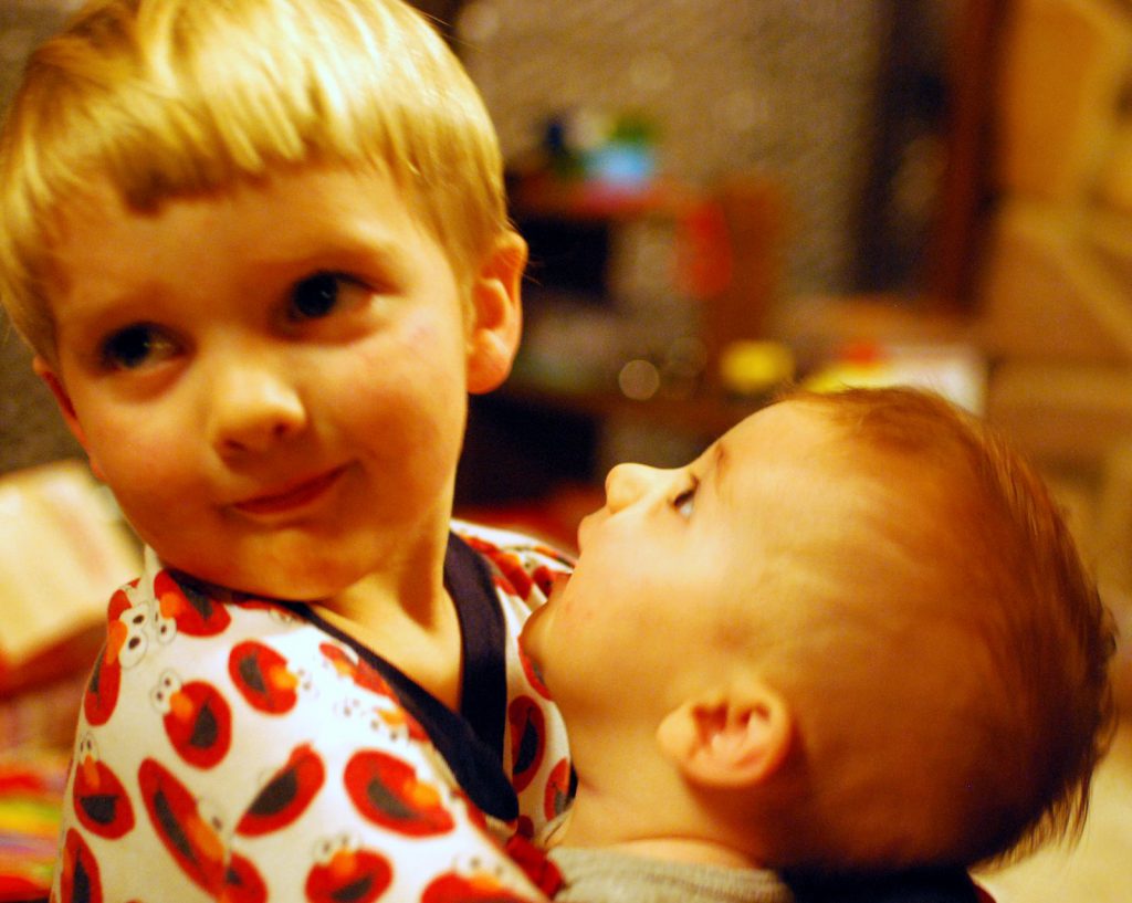She especially adores Silas. He has started to treat her as a person who can be involved in his play a little more, constantly putting blankets and hats on her.