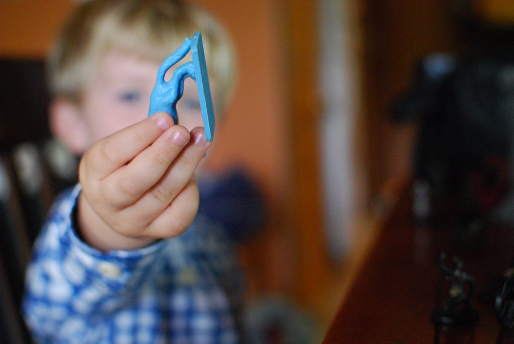 Silas has discovered JC’s D&D figures. He’s constantly asking to “play with the little guys.” He’ll play with them, talking to himself and doing voices for the figures, for truly astounding periods of time.