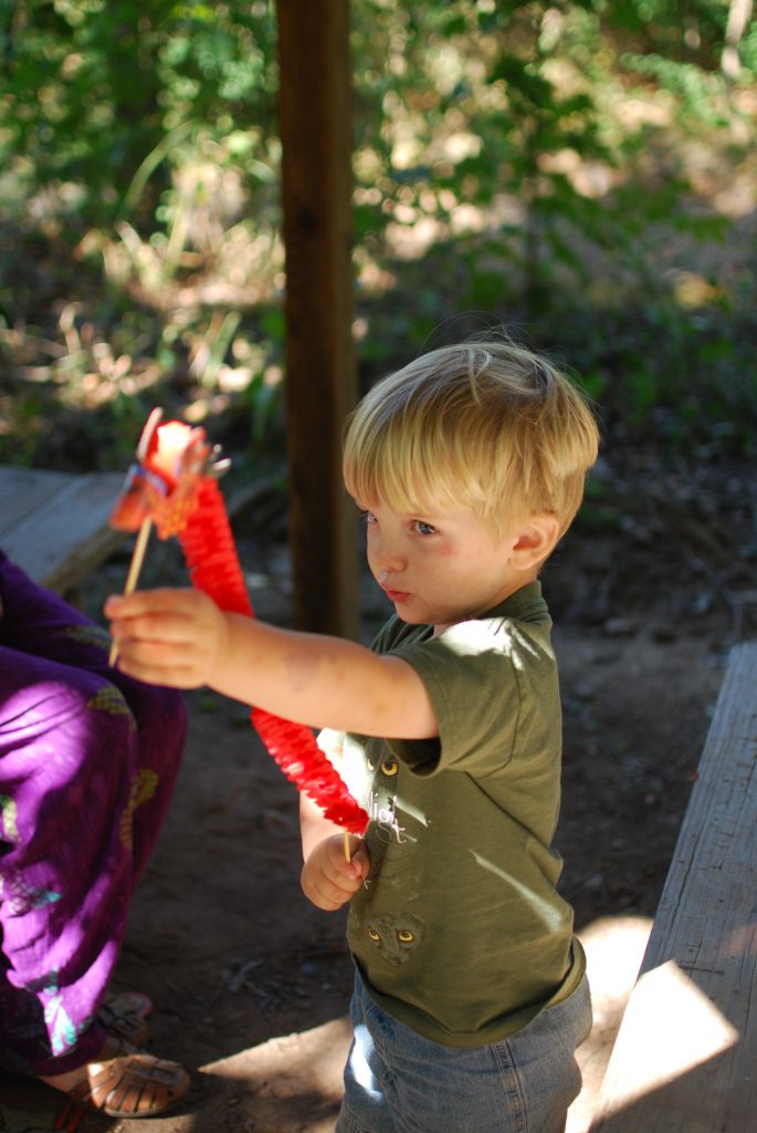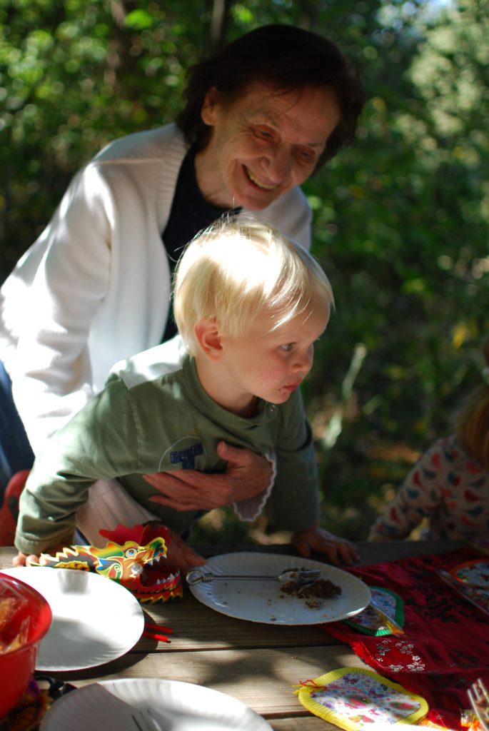 Dragon puppetsKids painted dragon masks and wooden fans. The fans were left over favors from a friend’s wedding.Elisabeth collects her handiwork.Eating lots of interesting food. James really took a shine to Granny.Priscilla, from the Dominican Republic, is staying with our friends for the school year. I can’t imagine what she must have thought of this odd Chinese/American birthday party…Practicing with chopsticksPetra’s not sure what she thinks of the mask…This is one of my favorite photographs I have ever taken. I love everything about it.