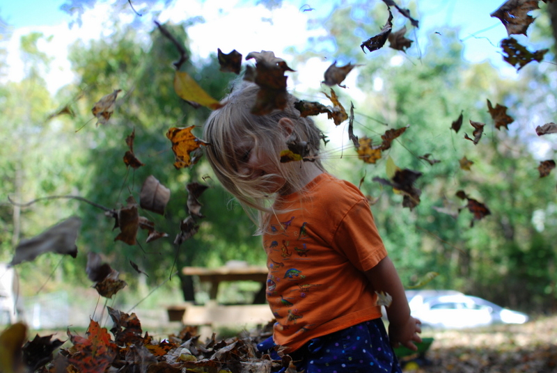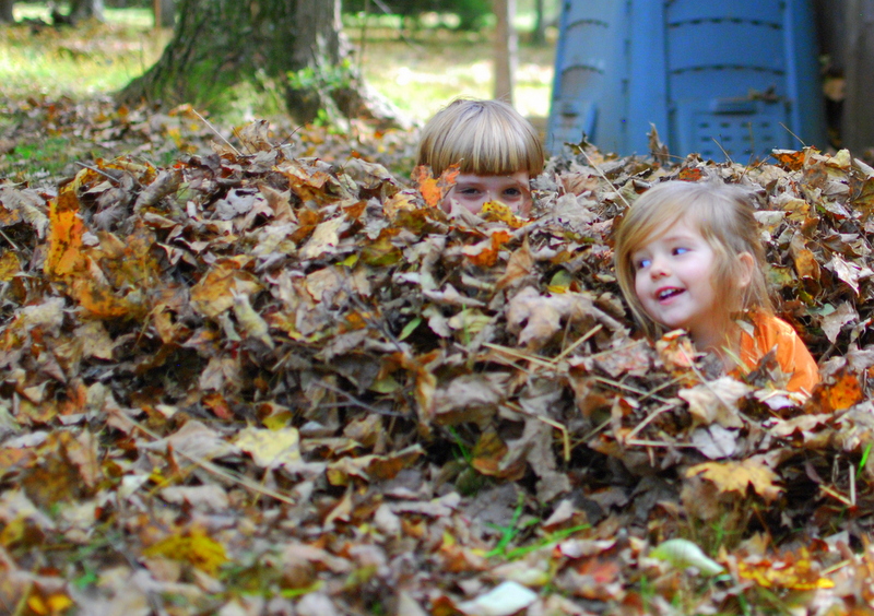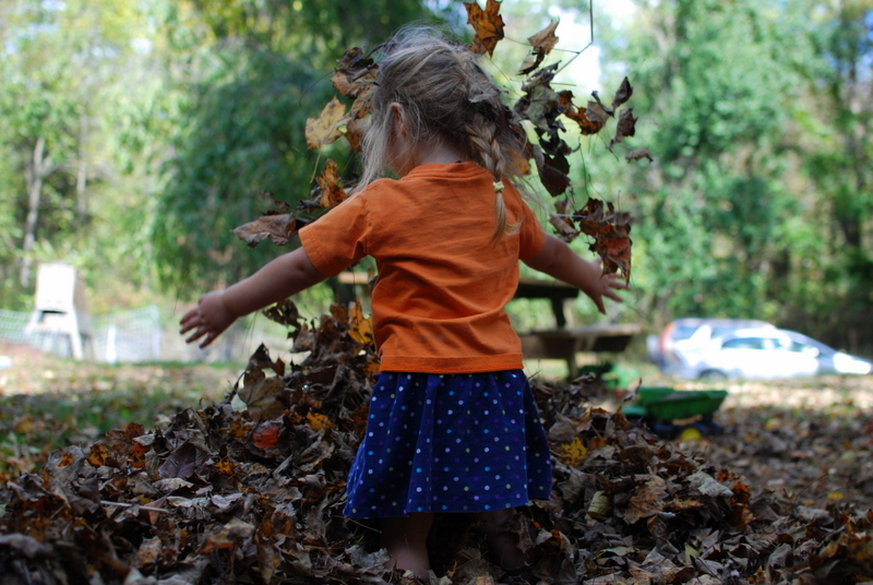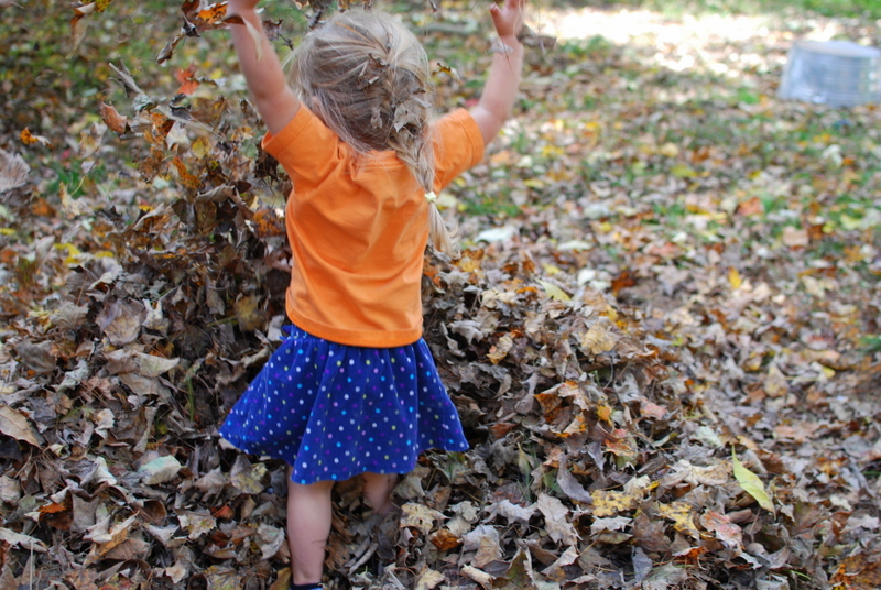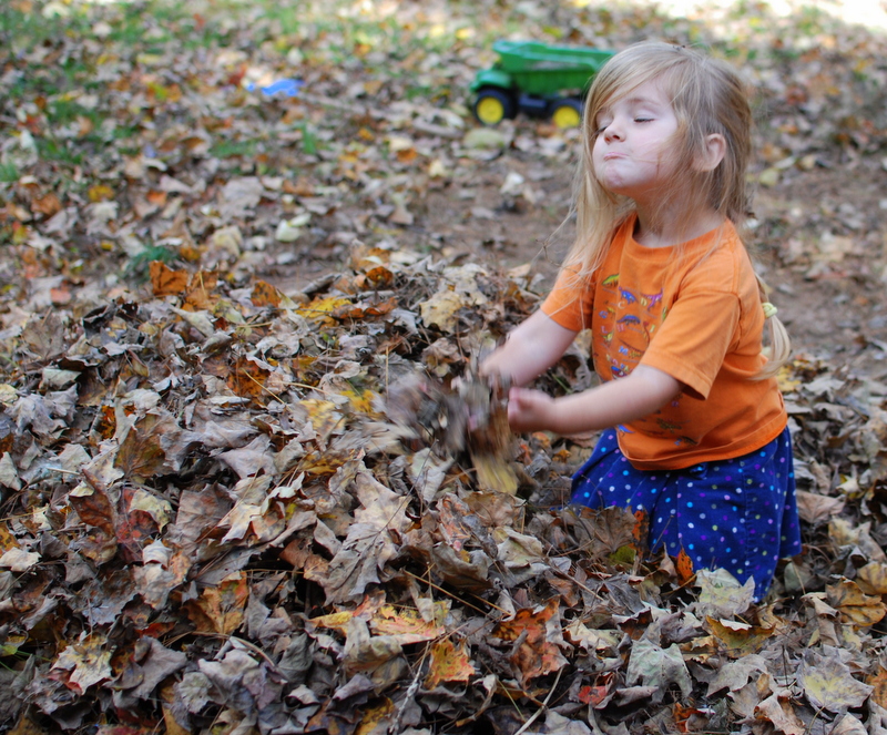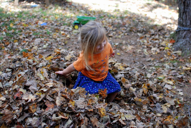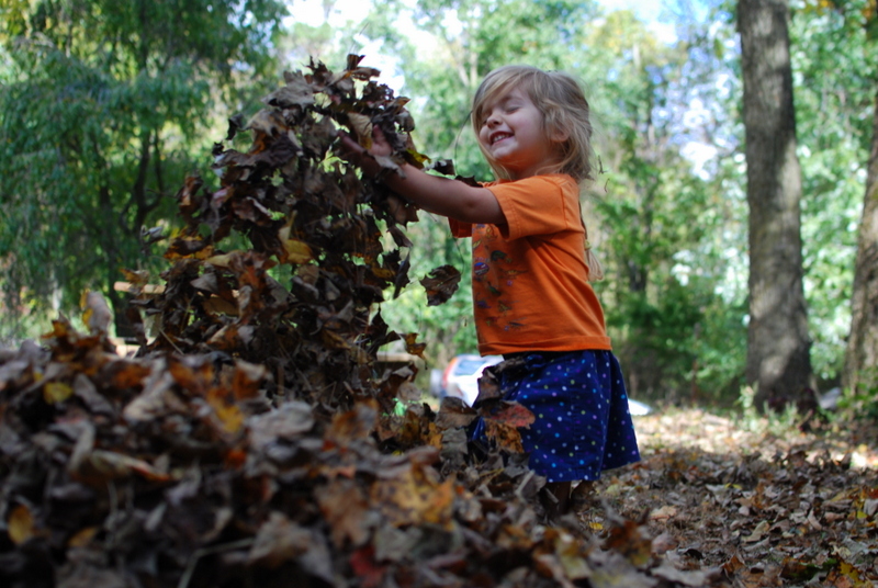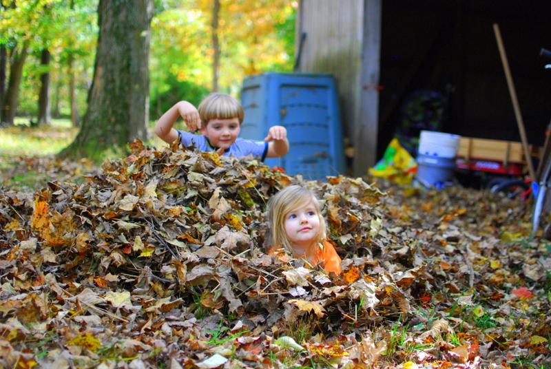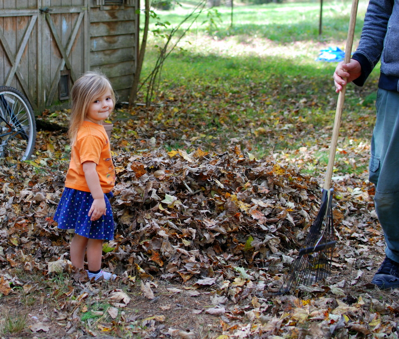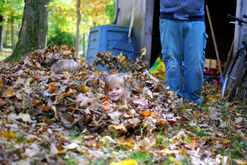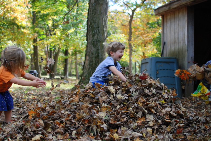 The man who created this leaf pile, right after getting out of surgery, deserves, in Laura’s words, “major daddy points.”