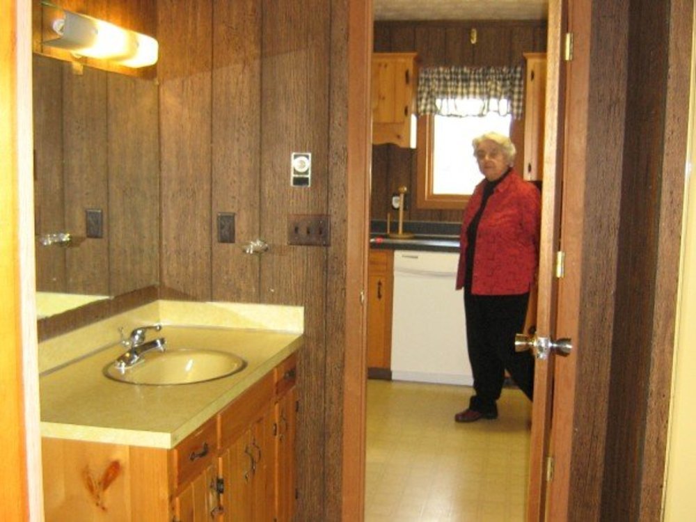 We still have a few things to do–or re-do–in this bathroom. The plastic tiles are more fragile than we had realized, and we need to replace a few that have broken over the years. It’s probably time to reseal the grout. We still need to stain the new door and fix a bit of trim on one side of it. It’s time to put in a proper TP holder; Silas ripped the old one out of the wall when he was a baby, and at the time, we couldn’t see the point in replacing it. He’s big enough now, though, to be trusted with that sort of convenience.