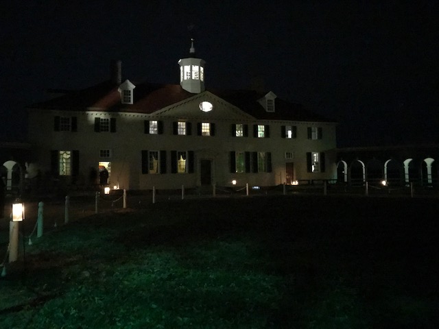 That night, we went to the Christmas event at Mount Vernon. I thought they did a lovely job with it. The interpreters were wonderful. They even had a camel on the grounds, because Washington apparently hired a camel for the amusement of his guests back in the 18th century. The kids were fascinated by him, as well as the “hedgehog cake” in the dining room (a cake made with marzipan to look like a hedgehog, with sliced almonds for quills!), and the encampment, designed to look like a Revolutionary war winter encampment.