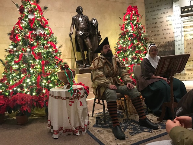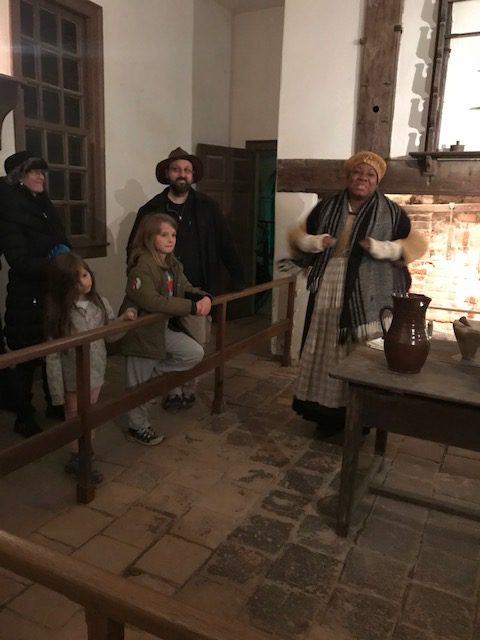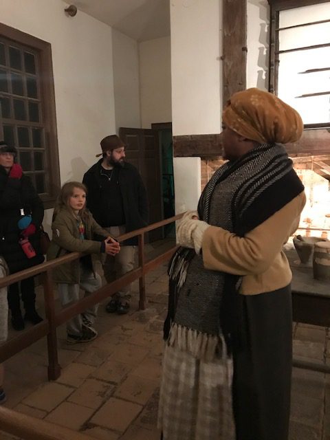 At the end of the tour, we wound up back in the visitors center, where these two interpreters sang carols and told stories about them while we had cookies and hot cider. Silas was especially excited about “The Boar’s Head Carol,” and I heard him singing it lustily to himself days later.