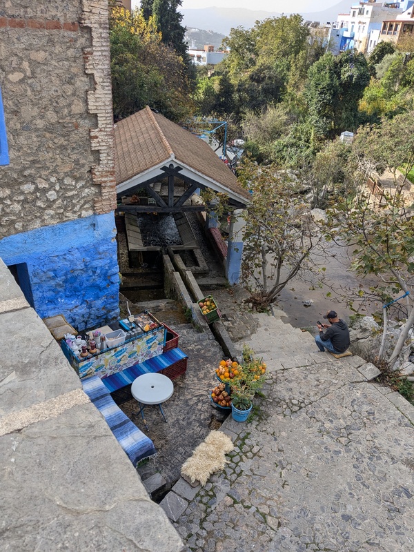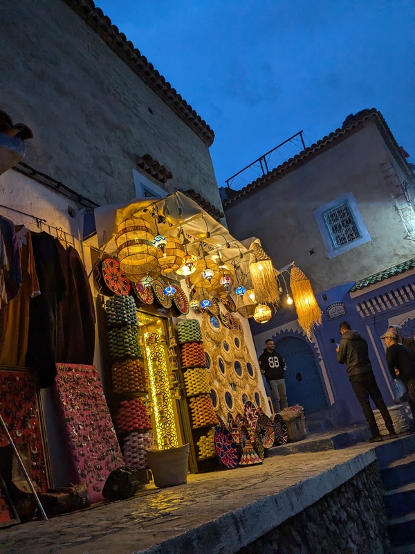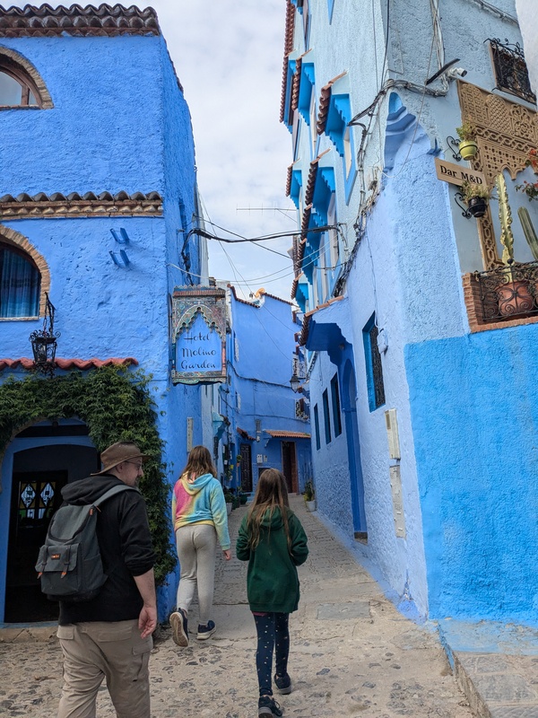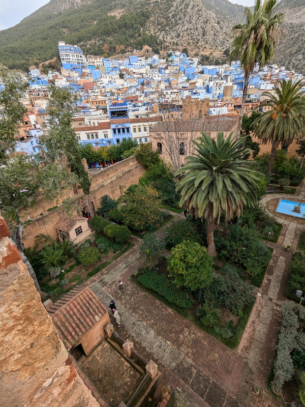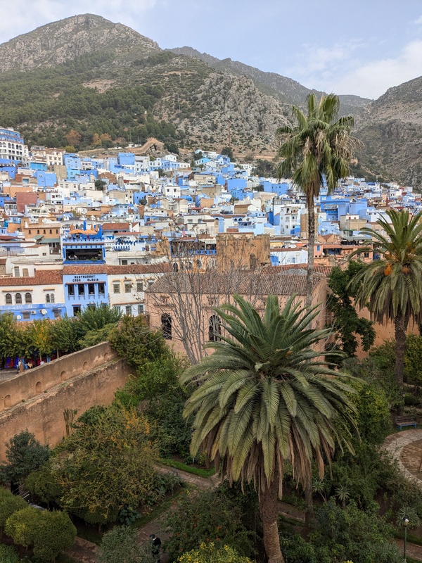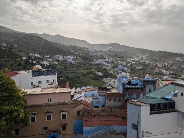 Chefchaouen was the first place where we got a real taste of the way that Moroccans live cheek by jowl with their history. Their buildings are mostly made of adobe, which, it turns out, tends to last for a long time. Where European cities have been leveled by fires and forced to rebuild, many Moroccan cities have never experienced the kind of disaster that would flatten them. There was a flood in one area, and an earthquake in another, but most of the places we visited had cities that had persisted unmolested for centuries. This had the fascinating effect of making history deeply present. One of the buildings we saw in Chefchaouen had a plaque on its wall noting that it had been built in the 1700s—and it was right next to a building that was only 50 years old. They looked the same. I would never have guessed.