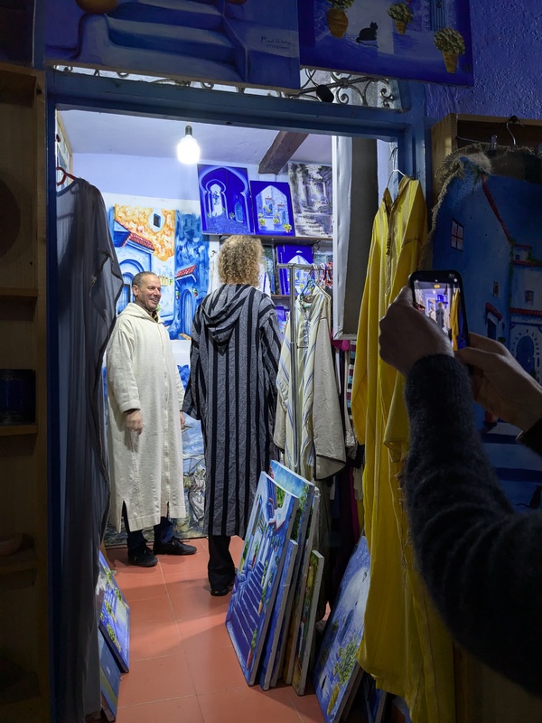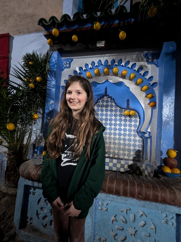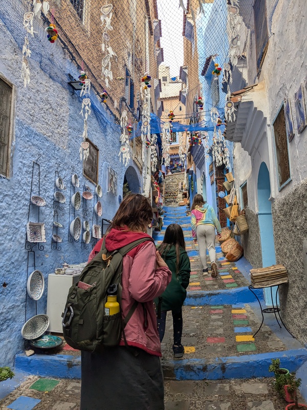 Very few Jewish people live in Morocco at all now; none, as far as Hmad knew, in Chefchaouen. This was a theme that we would experience over and over again in our time in Morocco—people would point out the historical treasures that came from the Jewish communities that made their homes in Morocco historically, but there was also a suspicion of Jews (everyone told us this was much worse 30 years ago), casual antisemitism in the form of stereotypes about Jews working in financial trades because of greed, and a general idea that Jewish people had chosen to emigrate to Israel “because they would be more comfortable there.” These comments and attitudes were among the very few things about Moroccan culture that made me uncomfortable. I hadn’t thought about or expected that this would be so prevalent.