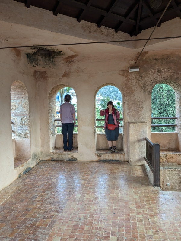 We visited the Kasbah, climbing steps up and up to get a view over the city. One thing I hadn’t ever thought about before was how lush and green it was inside the walls. The courtyard was full of trees and flowers. It’s a military structure, built for defense, but it felt warm and vibrant.