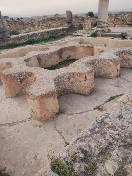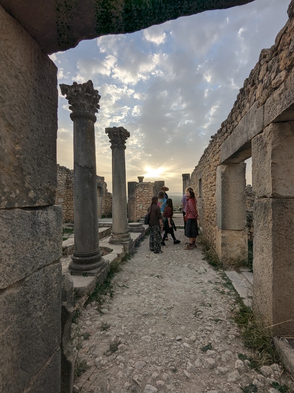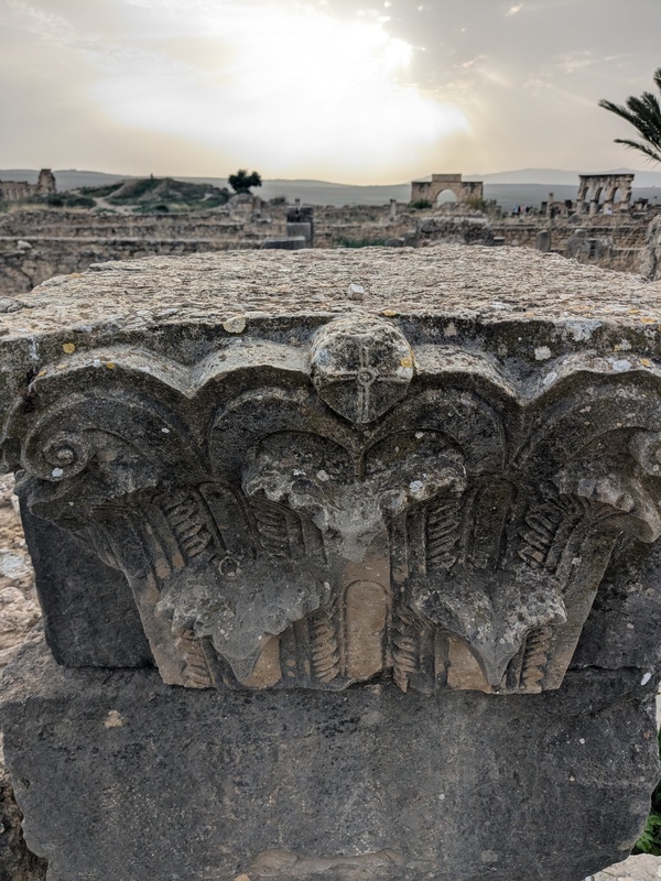 I completely understood what she meant. I’ve been to Roman ruins before, in the UK, but that experience requires significant imagination. I mean, I’ve been to Hadrian’s Wall, and, at least in the section I saw…it is a lil stone wall. Kind of cute, but you have to take someone’s word that it was built by the Roman Empire. Volubilis is a whole city. Walls waist-high, with clear doors, courtyards, vestibules, public and private spaces. I could much more vividly imagine the lives I’ve read so much about.