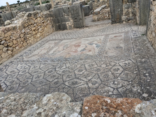 After the capital moved to Fes, Hmad told us, Moroccans avoided this area completely. They were offended by the graphic mosaics, and referred to the place as “Sin City.” The ruins were eventually mostly covered by dirt and plants. Emily asked what people thought this place was, during the couple hundred years between the government leaving Volubilis and the French beginning to excavate. The guide we met there said that people called it “The Palace of the Pharoah,” since the only comparable thing many of them had seen was in Egypt, which they passed through during the hajj.