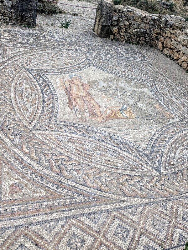 The mosaics were indeed quite graphic—and also my favorite part. They were so vivid, and I could recognize the figures they depicted before the guide interpreted them for us: Diana getting spied on in the tub, nymphs capturing Hylas, Bacchus seducing Ariadne. The artists’ work remained, even when the city was mostly rubble.