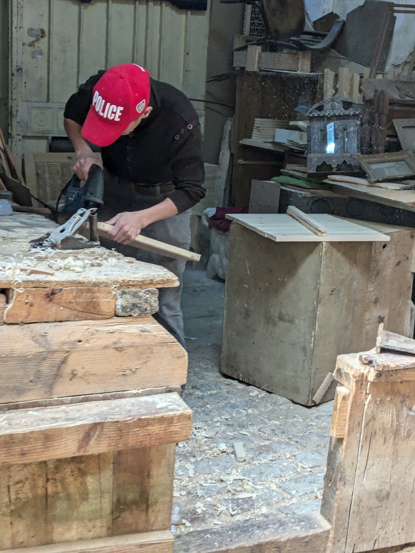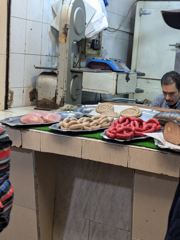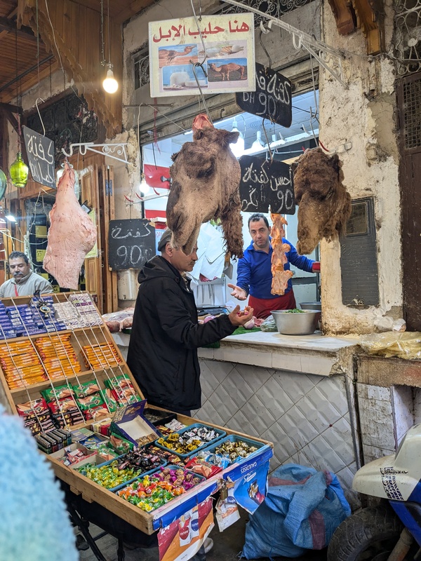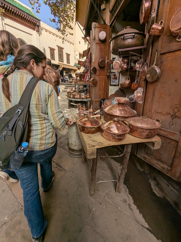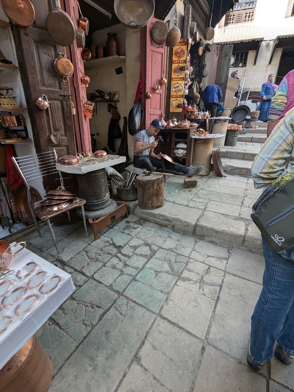 The medina is organized in sections or departments, with the wood workers in one place, the butchers in another area, etc. The shops were both selling wares and creating them; a craftsman would pause in hammering a copper pot to sell one.