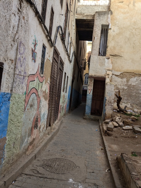 After we had gazed on the palace gate, Rashid took us literally across the street to the Jewish Quarter. It is the poorest section of the city, right across from the palace. When the Jews lived there (they don’t anymore), they were primarily salt merchants, which was a prestigious trade.