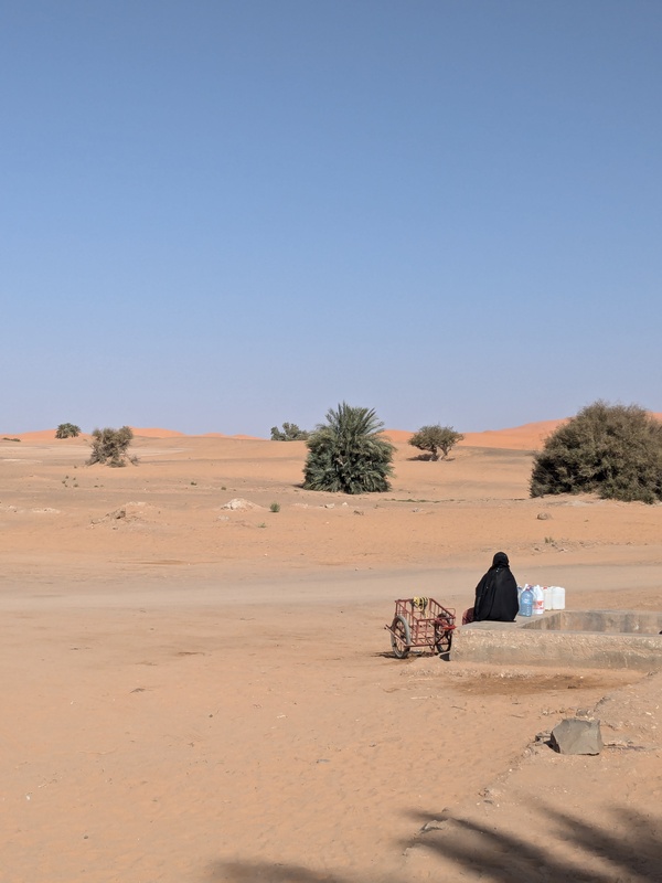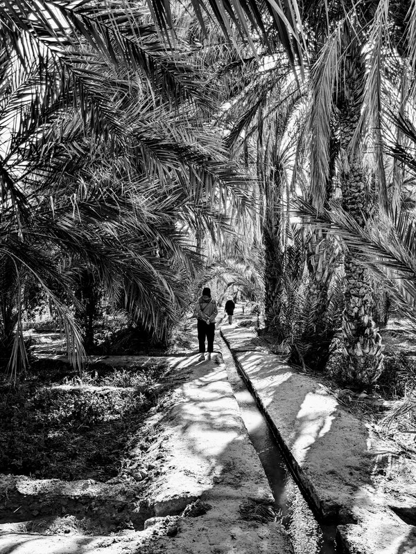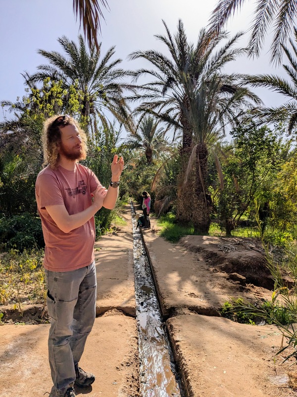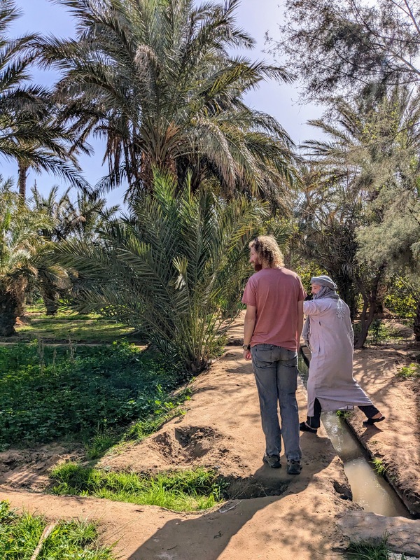 Hmad took us to an oasis in the desert, created by hand-dug wells and irrigation canals. A whole community created this together around 70 years ago.